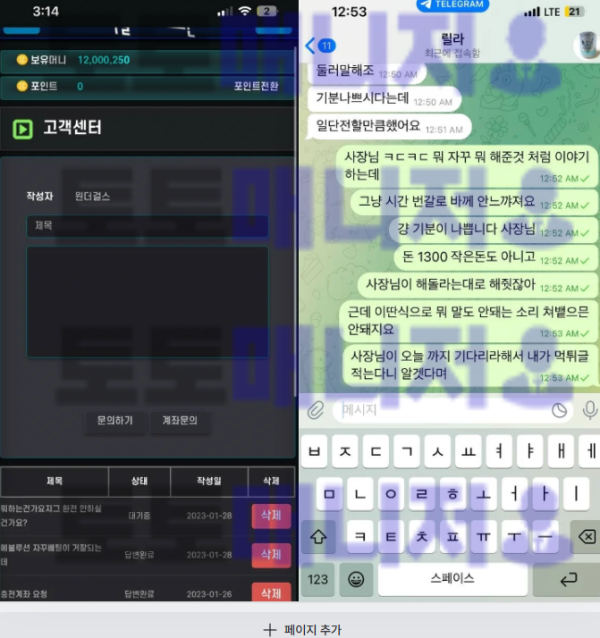 총판이랑 사이트랑 둘다 준다 말만하고 글지우니까 안주고 다시 글 올리니까 전화와서는 글 지우라고 협박만 하네요.;;