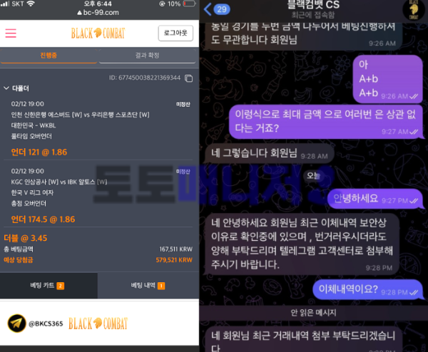 운 좋게 배팅이 맞았다. 그래서 바로 환전을 하고, 유튜브 보고 있는데 “입금”이 안돼 길래 사이트 접속하니 텔레로 연락을 달라 한다. 그래서 바로 연락하니 최근 이체 내역을 보내 달란다 ㅋㅋ