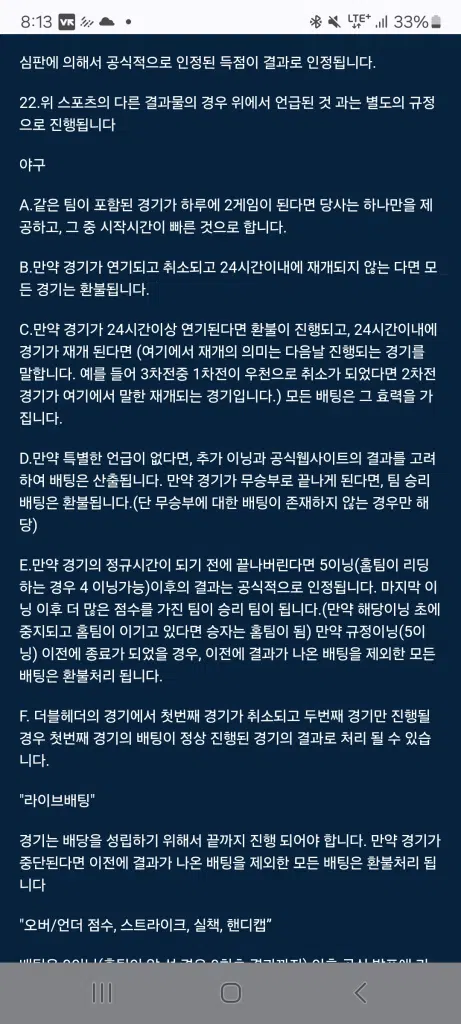 경기가 서스펜디드로 연기됐습니다. 사이트 규정에도, 고객센터 안내에도 24시간 내에 재개되지 않으면 전부 적특 처리(환불) 된다고 적혀 있었습니다. 저도 그걸 믿고 기다렸죠.