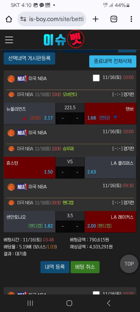 휴스턴 승, 레이커스 마핸, 뉴올 언더까지 경기 끝날 때까지 기다렸다가 환전하려고 로그인했는데 접속이 안 되더군요.