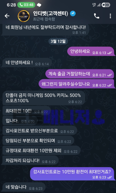인디벳 먹튀글 대화내용