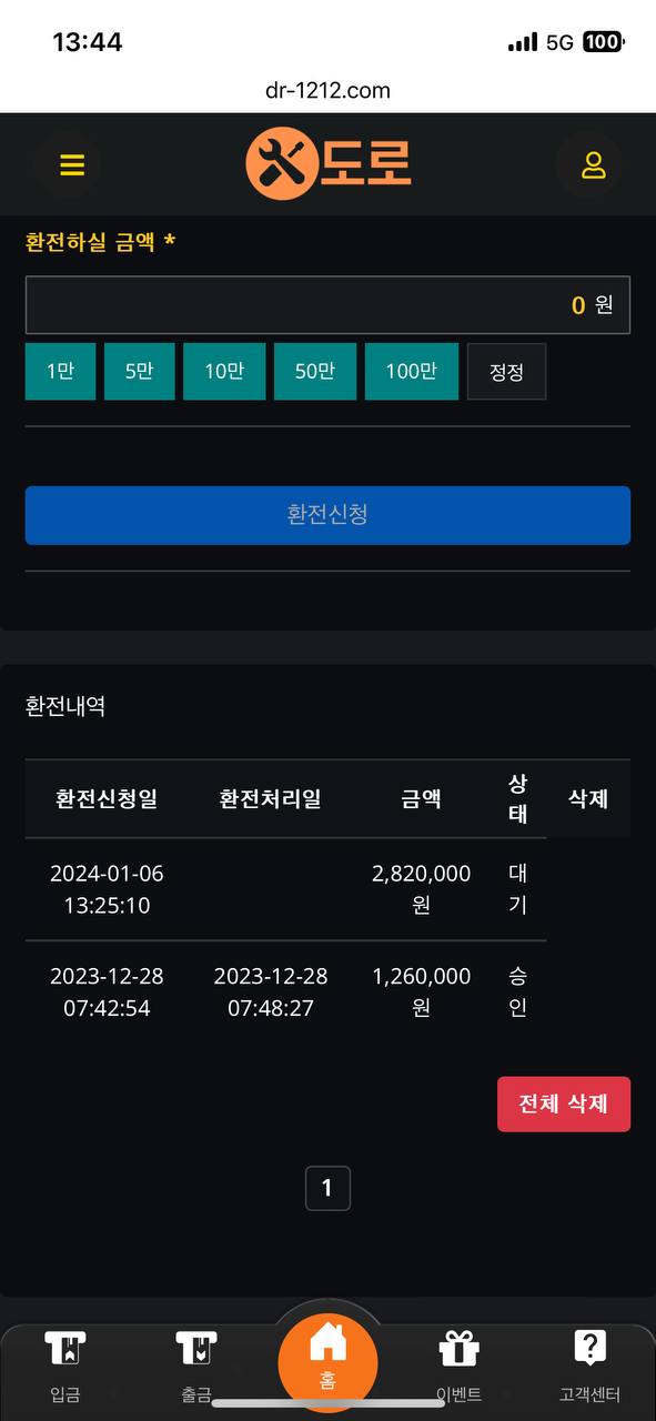 오랜만에 스포츠 당첨돼서 기분 좋게 환전 신청 눌렀는데,