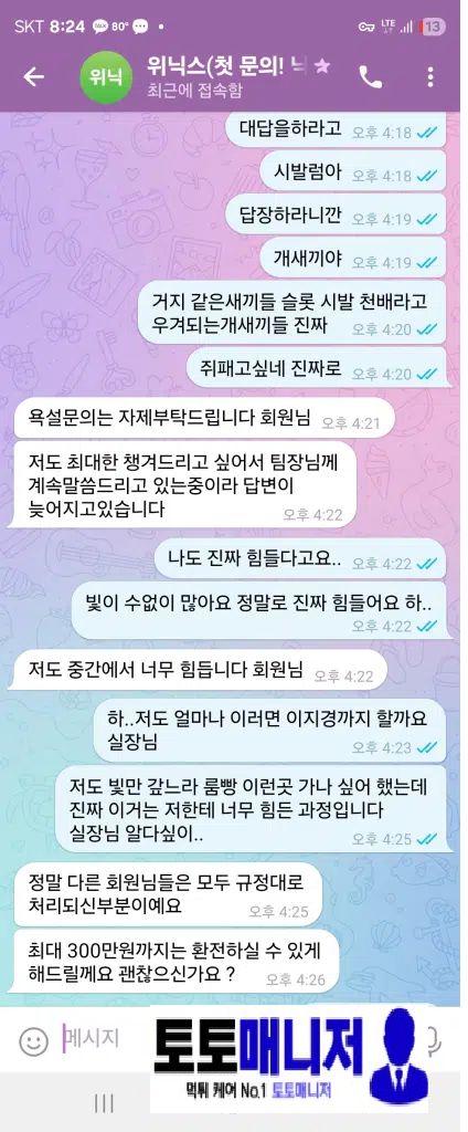 고객을 상대로 장난치는 것도 아니고, 자기 기분대로 환전 금액을 깎고 나누고 결국 끝까지 환전은 이뤄지지 않았고, 계정까지 차단당했습니다.