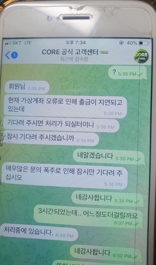 코어 먹튀 이건 사람 가지고 노는 수준임ㅅㅂ