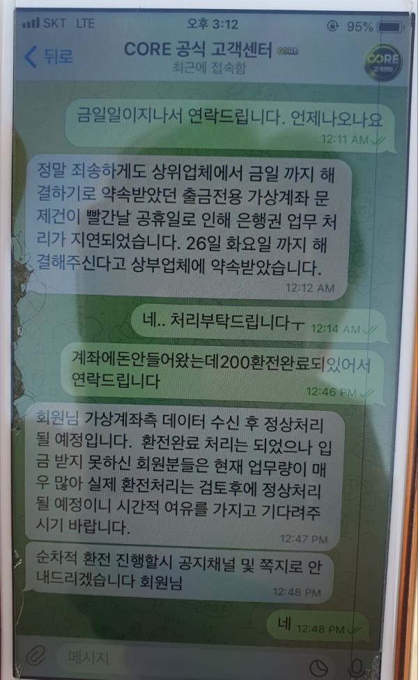 전날까지만 해도 제 계좌 확인하는 척하며 시간만 질질 끌더니 그대로 먹튀.