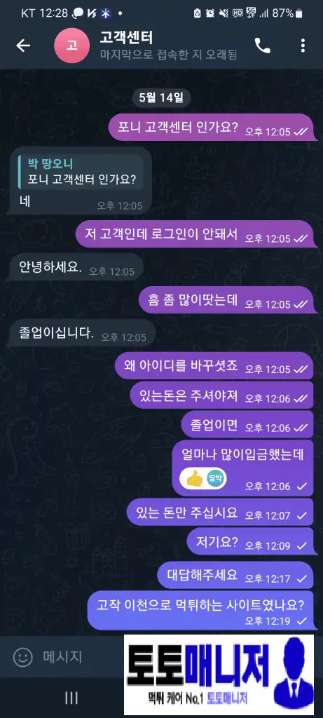 포니 원래 환전 잘해주다가 오늘 바카라 1000, 스포츠 1000 합쳐서 2천만 원 땄는데 로그인하니 없는 계정 뜹니다. 텔레그램으로 물어보니 ‘졸업입니다’ 한마디로 끝. 아니 졸업이면 최소한 있는 돈은 환전해주고 졸업시켜야 하는 거 아닌가요? 진짜 개어이없고 빡칩니다.