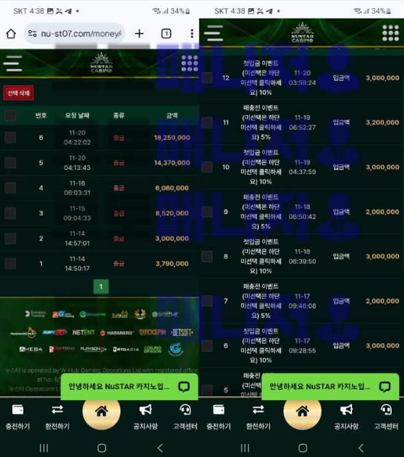 아이디 자르고 먹튀까네요 먹튀할라고 홍보하는 그지들입니다 더사이드 누스타 이용하지마세요 환전버튼 없습니다