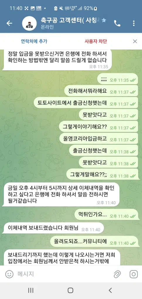 안녕하세요. 제가 얼마 전에 토토사이트 ‘축구공’ 가입해서 5만원 충전했는데요, 그냥 재미로 바카라 돌렸더니 운좋게 15만원까지 갔습니다. 환전 신청했는데...이게 뭐냐구요? 계속 ‘대기중’만 뜨고 통장엔 돈 1원도 안 들어왔습니다. 고객센터에 문의하니까 이미 출금 됐다는데, 제 계좌엔 없어요;; 통장내역까지 보여줬는데도 해결도 안 해주고 무성의하게 답변만 하네요. 지금도 돈은 감감무소식… 진짜 먹튀 맞는 것 같아요. 저처럼 당하지 마세요 ㅠㅠ 억울하고 빡칩니다.