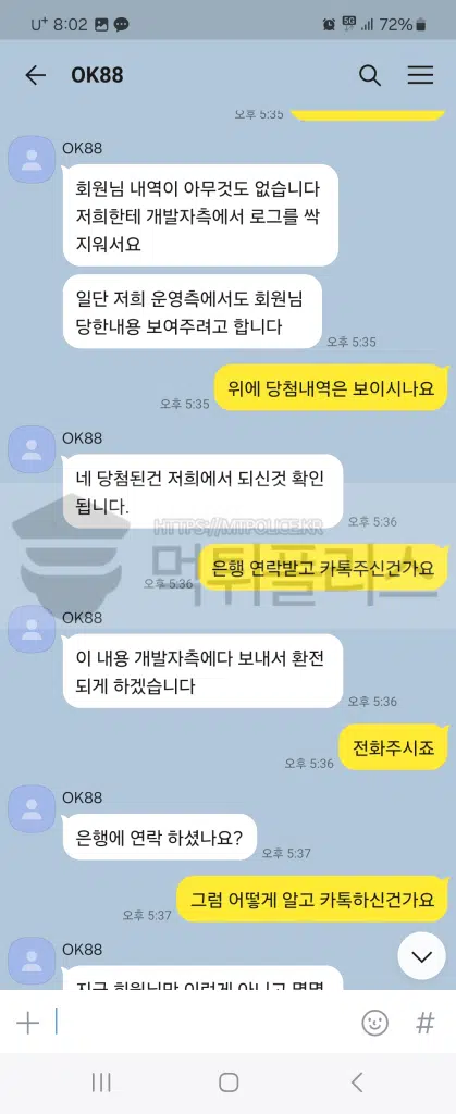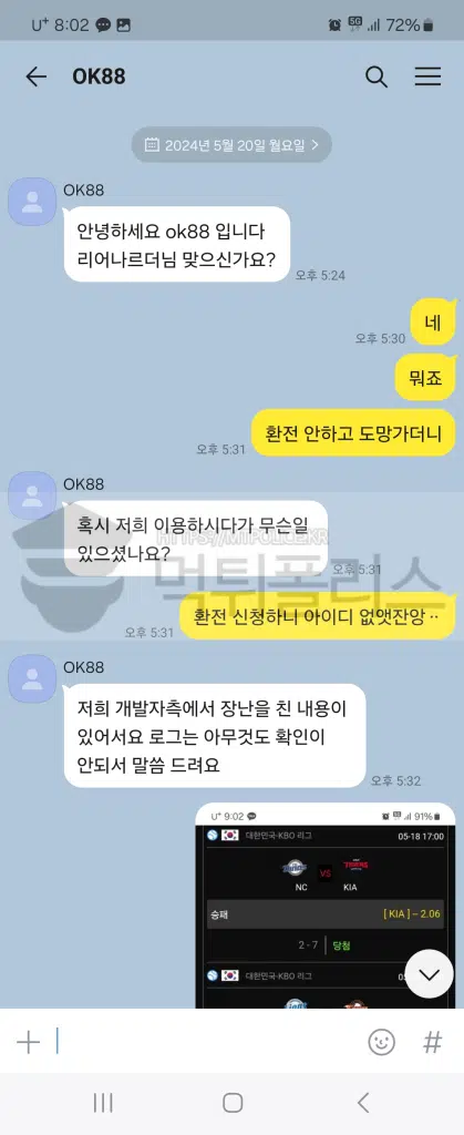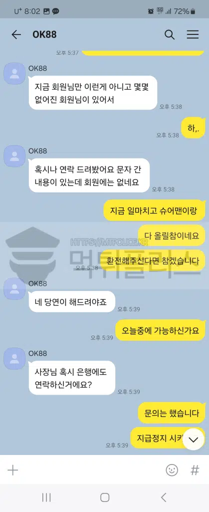 ok88bet, 먹튀 후 제 계좌까지 정지..어이없공~황당하네 직원 사고라고?