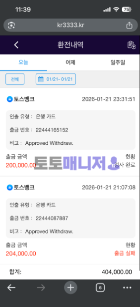 | 사이트주소 | https://www.kr3333.kr/m/home |