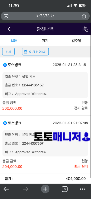| 사이트주소 | https://www.kr3333.kr/m/home |