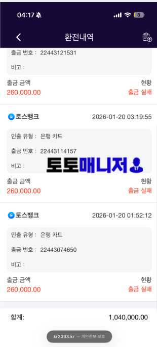 | 사이트주소 | https://www.kr3333.kr/m/home |