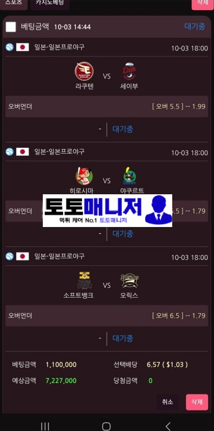사연은 이렇습니다. 지인의 지인이 운영한다고 해서 믿고 가입해 몇 차례 배팅해봤습니다. 평소 저와 사대(롤·픽 성향)가 안 맞아 자주 이용하진 않았는데, 최근 돌발 이벤트 문자를 받고 오랜만에 접속해 100만원을 충전했습니다. 포인트도 받고 일본야구 3폴더를 모두 오버로 걸어놨고, 나중에 확인해 보니 전부 적중해 있었습니다.