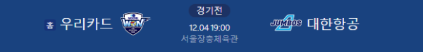 상대 전적 (H2H) 대한항공이 전력상 우위를 점하고 있으나, 우리카드가 홈에서 이변을 만드는 경기가 종종 있었습니다. 이 경기는 수도권 라이벌 매치로 치열한 접전이 예상됩니다.