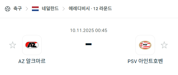 [네덜란드 에레디비시] 2025년11월10일 알크마르 vs PSV 아인트호벤 분석 중계