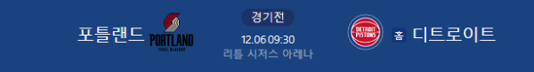 포틀랜드 젊은 선수들을 중심으로 리빌딩을 진행하고 있으며, 빠른 템포의 공격을 시도합니다. 공격의 기복이 심하고, 수비 조직력이 불안정하여 원정 경기에서 약세를 보입니다. 현재 리그 최하위권에 머물고 있는 팀들 간의 대결입니다. 상대적으로 디트로이트보다 외곽 공격의 옵션이 다양할 수 있습니다.