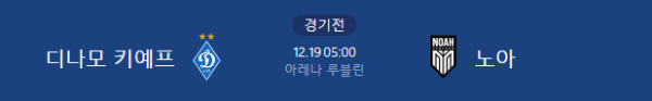 | 핵심 포인트 | 디나모 키이우의 **'자존심 회복'**과 FC 노아의 **'플레이오프 굳히기'** 대결입니다. 디나모는 중립 지역 홈 경기임에도 불구하고 승리를 위해 공세를 취할 것이며, 노아는 안정적인 수비 후 카운터 어택을 노릴 것입니다. |