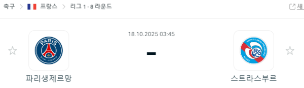 [리그앙] 10월 18일 파리 생제르맹 vs 스트라스부르 생중계