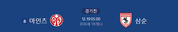 | 승패 | **마인츠 승** | 최근 뮌헨을 상대로 보여준 경기력과 삼순스포르의 6경기 무승 부진을 고려할 때 홈 승률이 높습니다. |