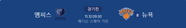 멤피스 그리즐리스 vs 뉴욕 닉스 (NBA) (2025 11.12)