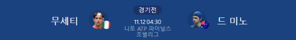 무세티 vs 드 미노 경기 분석 및 토토 예측 (니토 ATP 파이널스)