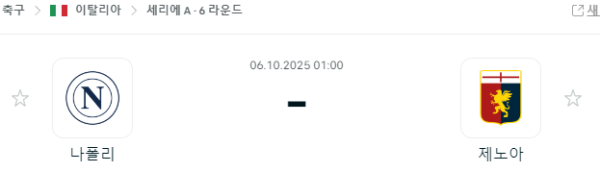 세리에A 10월 6일 빅매치! 나폴리 vs 제노아 중계 안내