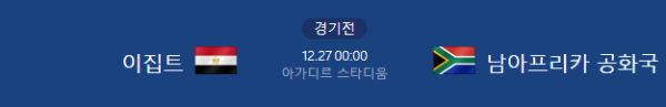 이집트가 정배를 받았으나 최근 맞대결에서 남아공이 우세했던 점을 고려하면, 남아공이 패하지 않거나 1점 차 이내로 승부할 확률이 매우 높습니다.