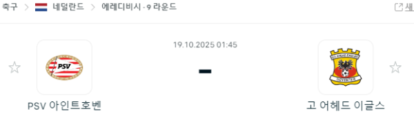 에레디비시 10월 19일 경기 — 아인트호벤, 홈에서 고어헤드 이글스 상대
