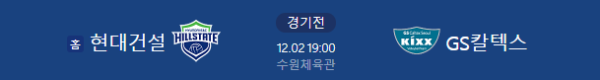 홈 팀: 현대건설 (Hyundai E&C Hillstate)
