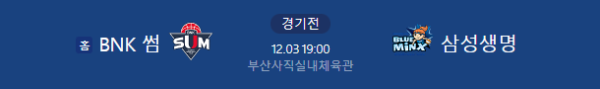 안녕하세요 픽스터햄스터입니다. 2025년 12월 3일에 예정된 여자프로농구 경기를 분석해 드리겠습니다.