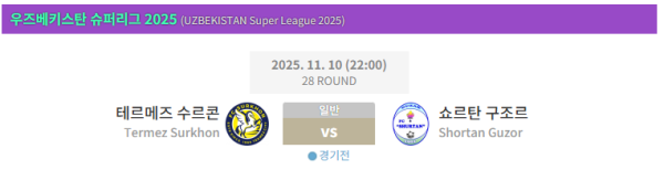 우즈베키스탄 슈퍼리그 2025 11. 10 테르메즈 수르콘vs쇼르탄 구조르 경기분석