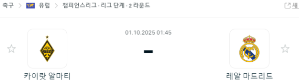 챔피언스리그 10월 1일: 카이랏 알마티 vs 레알 마드리드 생중계
