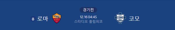 대회 코파 이탈리아 또는 친선 경기 (로마는 세리에 A, 코모는 세리에 B 소속)
