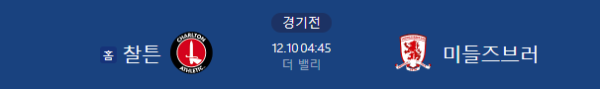 | 핵심 포인트 | 전력상 미들즈브러가 우위에 있지만, 찰튼이 홈에서 보여줄 투지와 수비 조직력이 변수입니다. 미들즈브러가 찰튼의 수비 블록을 깨고 빠르게 득점한다면 손쉬운 승리를 가져갈 수 있습니다. |