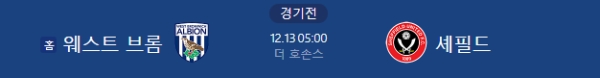 경기 양상 예측 매우 팽팽하고 신중한 경기가 예상됩니다. 셰필드 유나이티드가 근소하게 우세하지만, 웨스트 브롬의 홈 강세 때문에 쉽게 승부가 나지 않을 수 있습니다. 1골 차의 승부 또는 무승부 가능성이 높습니다.