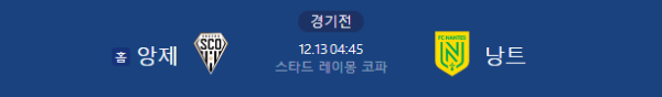 | 핵심 포인트 | 리그 1의 중하위권 팀 간의 맞대결로, 승점 3점을 따기 위해 치열한 접전이 예상됩니다. 앙제의 홈 이점과 낭트의 수비 집중력이 맞붙을 것입니다. 어느 팀이 먼저 상대의 실수를 유발하여 득점하느냐가 승패를 결정할 것입니다. |