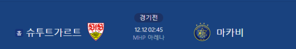 • (추정치) 이스라엘 리그의 강팀으로, 유럽 대항전에서 준수한 모습을 보이지만 슈투트가르트와 같은 빅리그 팀과의 전력 차이는 분명합니다.