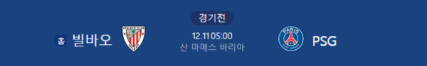 근거: (추정치) PSG가 공격력을 폭발시키며 3골을 득점하고, 빌바오가 홈에서 1골 만회하는 난타전 끝에 PSG가 승리할 것으로 예상합니다.