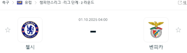 10월 1일 유럽챔피언스리그 – 첼시, 벤피카와 운명의 맞대결