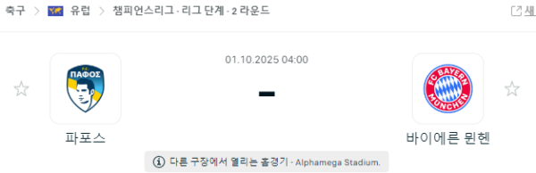 10월 1일 중계 바이에른헨 뮌, 파포스 원정길… 챔스