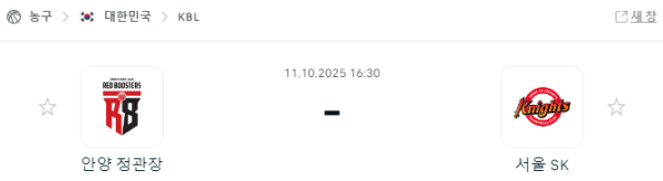 10월 11일 KBL 안양정관장 vs 서울SK 경기 무료중계 안내