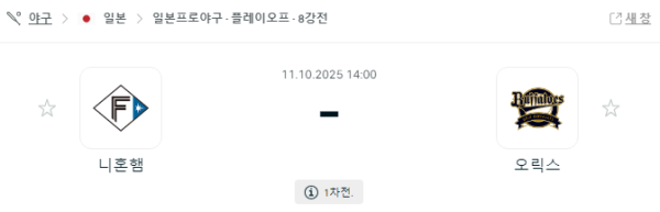 10월 11일 NPB 니혼햄 vs 오릭스 경기 일정·중계 안내