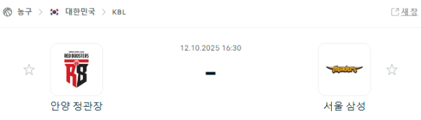 10월 12일 KBL 안양정관장 vs 서울 삼성 중계 안내