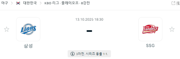 10월 13일 KBO 준플레이오프 3차전, 삼성 라이온즈 vs SSG 랜더스