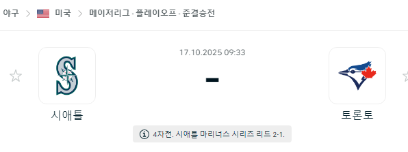 10월 17일 MLB, 시애틀 vs 토론토 꿀매치 중계