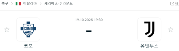 10월 19일(일) 코모 vs 유벤투스 FC의 중계 안내