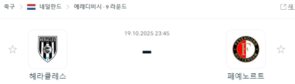 10월 19일 에레디비시 헤라클레스 vs 페예노르트 중계 안내