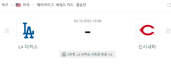 경기는 초반부터 다저스가 장악할 가능성이 크다. 야마모토는 안정된 이닝 소화로 신시내티 타선을 틀어막고, 다저스 타선은 리텔의 실투를 놓치지 않을 것이다. 핵심 변수는 6~8회 다저스 불펜의 운영이다. 1차전과 달리 로버츠 감독이 이 구간을 무난히 넘긴다면, 다저스가 초반에 벌린 점수를 끝까지 지켜내며 승리를 가져갈 것으로 보인다.