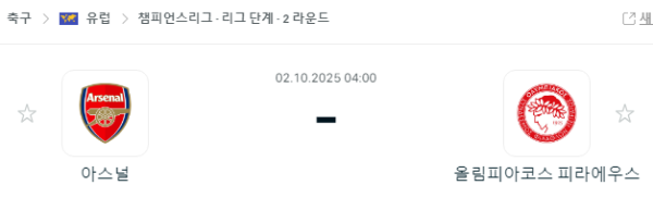 10월 2일 빅매치챔스 격돌! 아스날 vs 올림피아코스