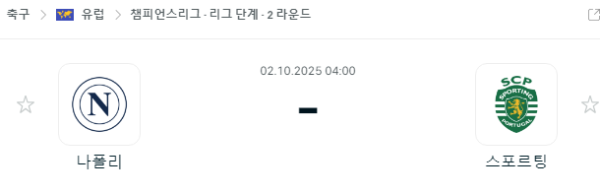 10월 2일 챔피언스리그 맞대결 나폴리 vs 스포르팅 중계